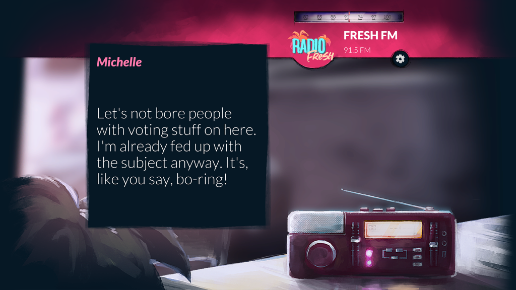 The core premise behind Alt-Frequencies is the use of pirated radio signals to solve what I describe as an evil political agenda. In the game, you come across a pirated signal on your radio. This owner of the signal, Winston, tells of government corruption in regards to an upcoming vote. Or rather, a vote that doesn’t matter because the higher-ups already implemented the thing that was supposed to be voted on. If you love government conspiracies, you’ll enjoy this story.
