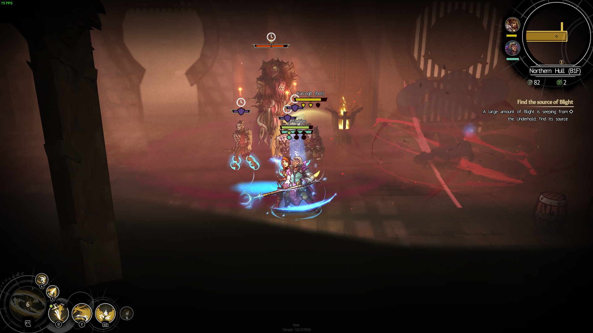Blightbound for the most part kept most of it’s negative points found during it’s days in early access: Menu’s are still a little confusing, Dungeon designs are boring yet cryptic at best, and unless you have friends to actively chat with and delegate tasks, you won’t be having much fun. The ai bots are no longer needed it seems as the online presence is robust enough to find a group in a few minutes. If you decide to use them however you will still be met with an aggressively easy time where the bots will do everything for you before you get a chance to realize something has changed. Combat , if you do get time to experience it since most of the time your group overpowers them if you are a newcomer, is boring but expansive. you have special moves with a cool down and a regular attack. no combos though. Frustratingly enough one of the mechanics from before, forcing a party with one of each class, is still being used though that is due to how important having one mage in your party is. The system is overall flawed and no real effort was taken to correct that. no healing items to find, nothing.