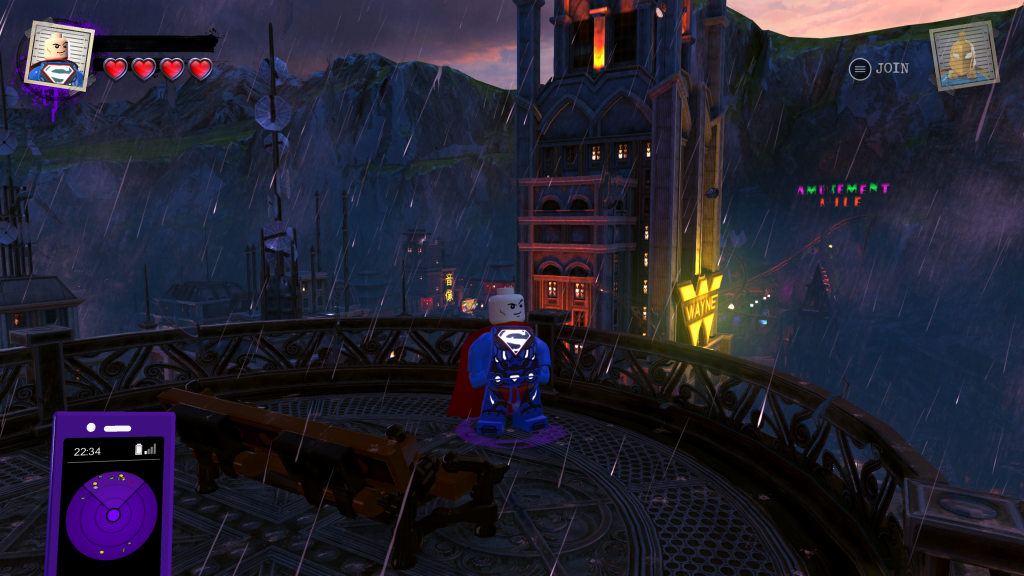 Even though most of the gameplay has been done before, it still is a lot of fun, especially when you can free roam the world. The story is surprisingly short, so you will have a lot of time to roam around Gotham, Metropolis, and other locations. There are plenty of characters to unlock and gold bricks to find. And the environments are such a treat. Gotham feels like it was lifted right out of the Tim Burton movies. Metropolis is a shining beacon of light while Gotham is set in perpetual darkness and rain. Much like the Lego Batman movie, you will find a plethora of characters that are well known and obscure. The more characters you find, the more options you have if you want to create more characters.